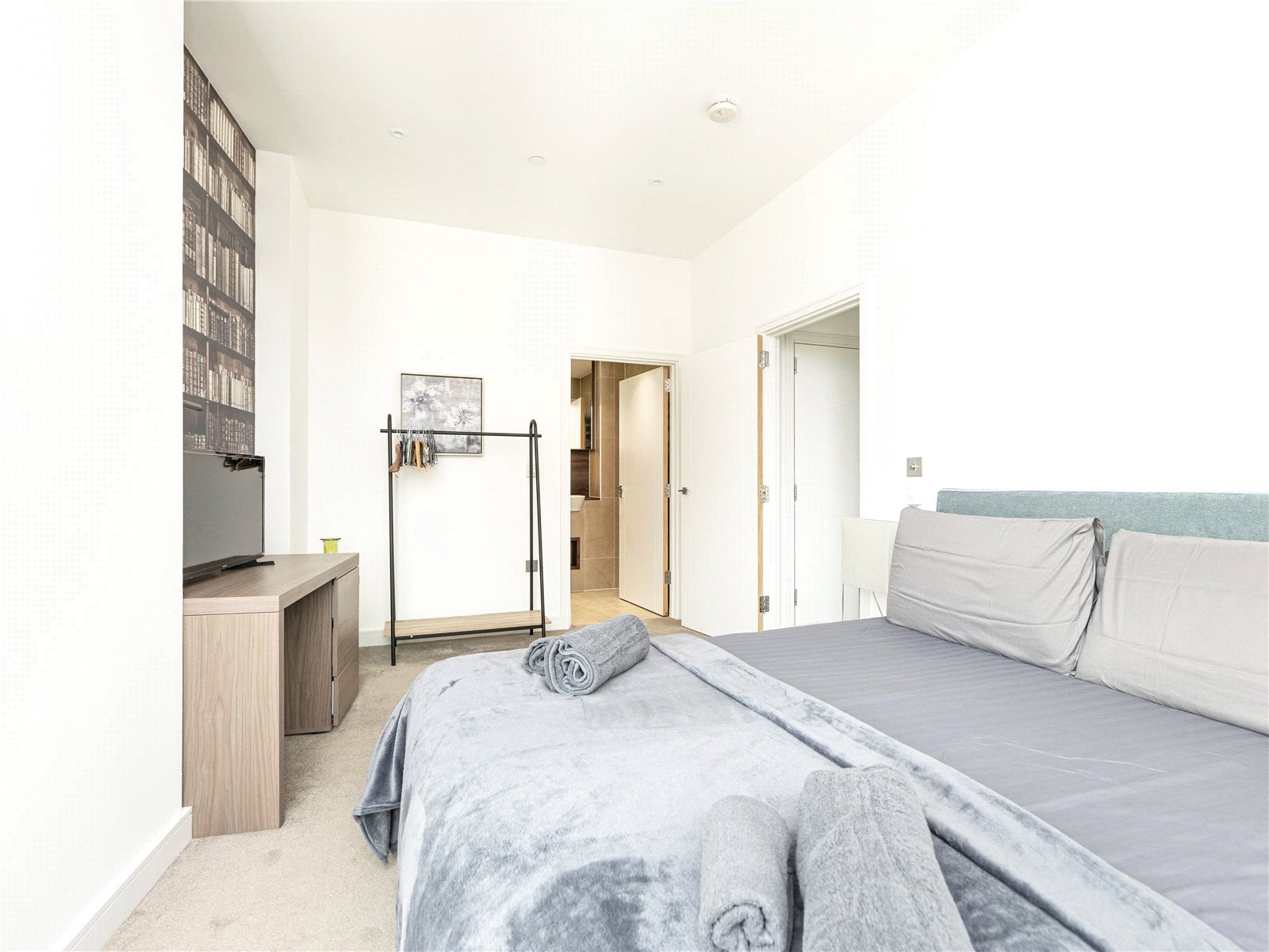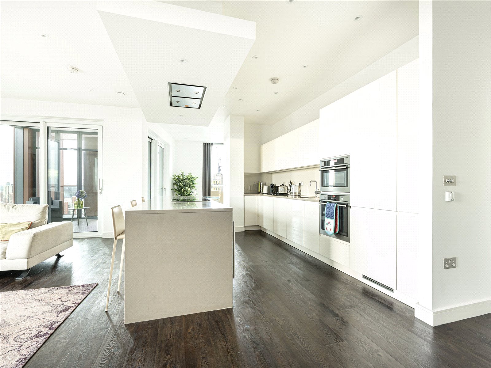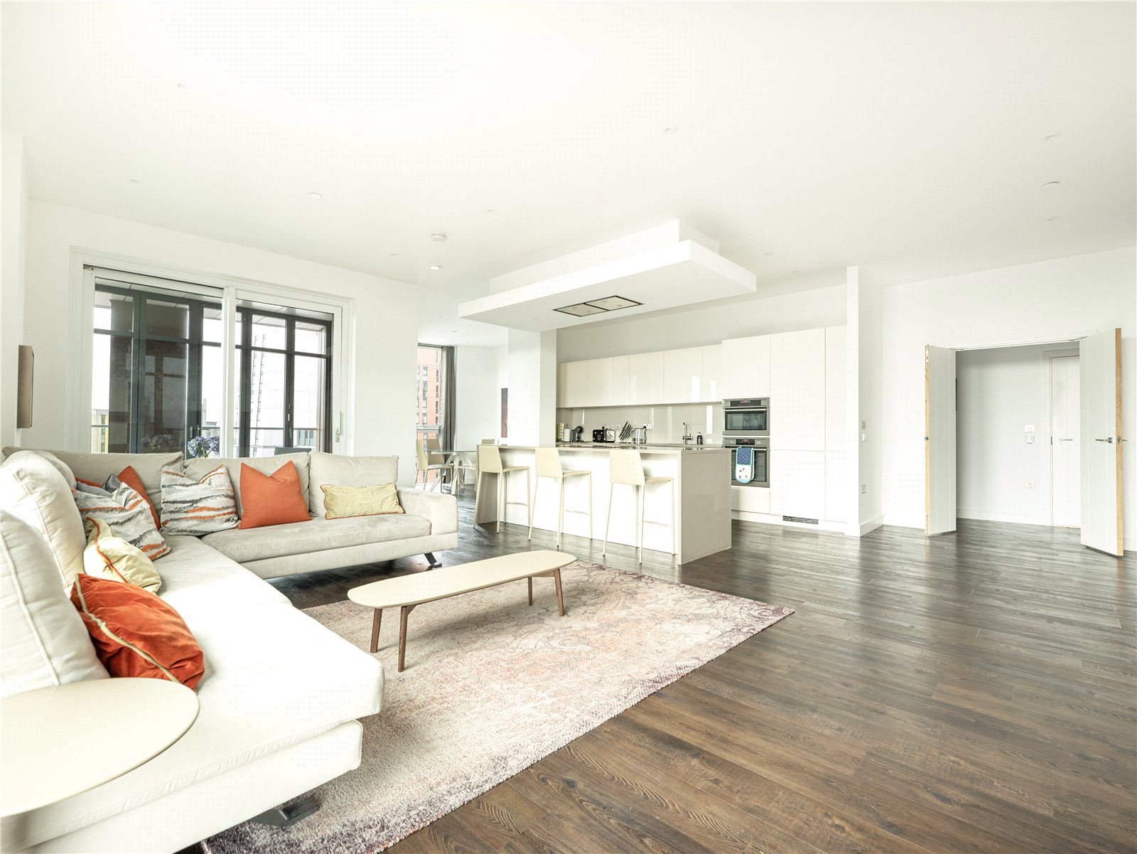 Offering integrated kitchen appliances and underfloor heating, it also has three bathrooms, two of which are en suite, along with an additional cloakroom. Residents enjoy an array of amenities, including a 24-hour concierge service, a well-equipped gym, a cinema screening room, and communal gardens.